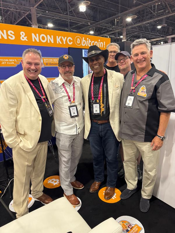 CEO of the Bitcoin Ben Crypto Clubs, Jay Bose pose with Owner Operators from Nashville, Mass, and St. Louis at BITCOIN 2025!